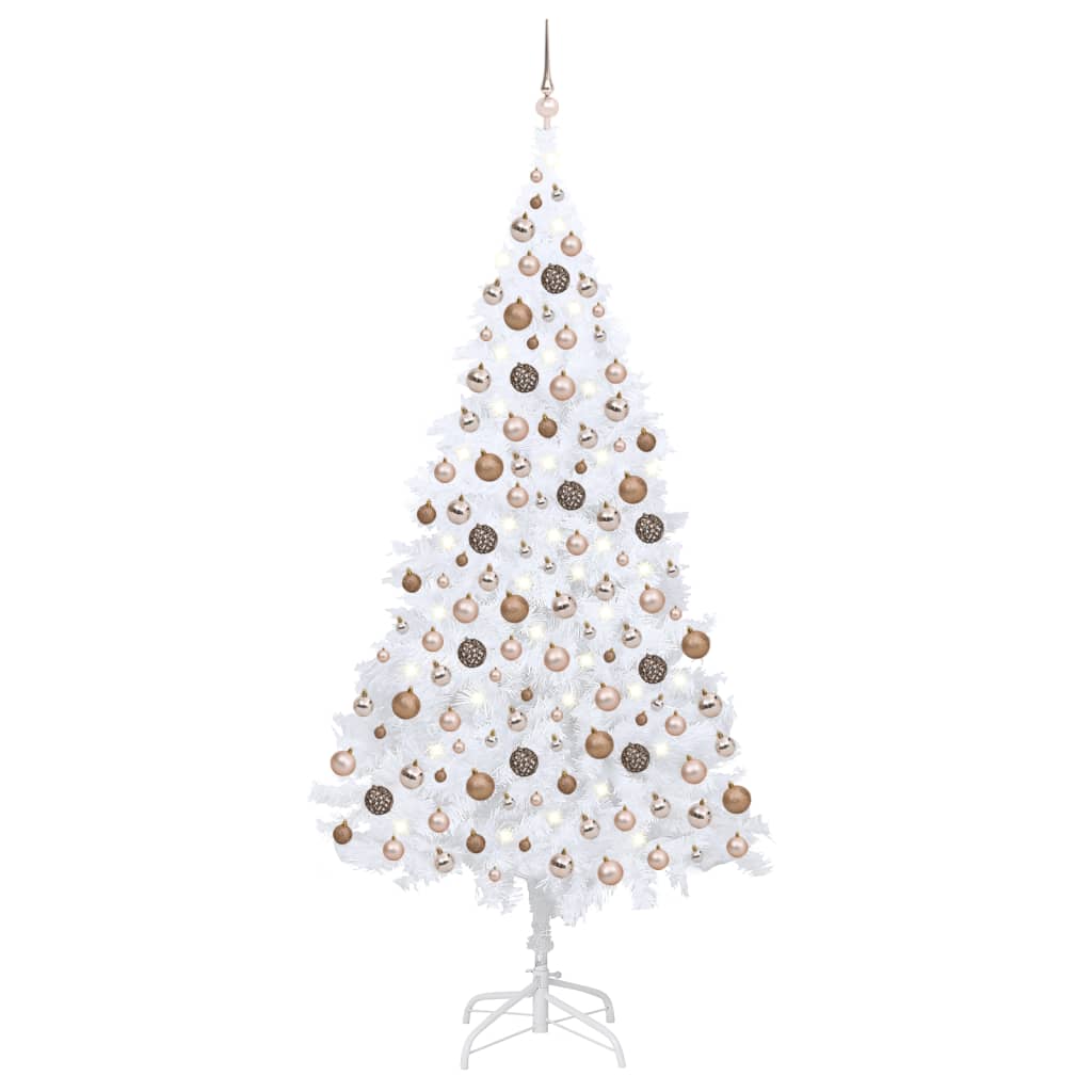 Umetna novoletna jelka z LED lučkami in bučkami bela 210 cm
