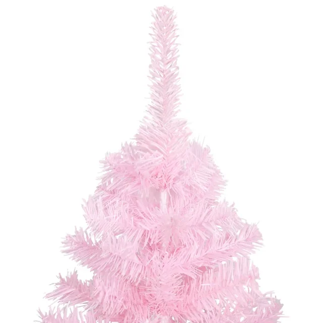 Umetna novoletna jelka z LED lučkami in bučkami roza 120 cm