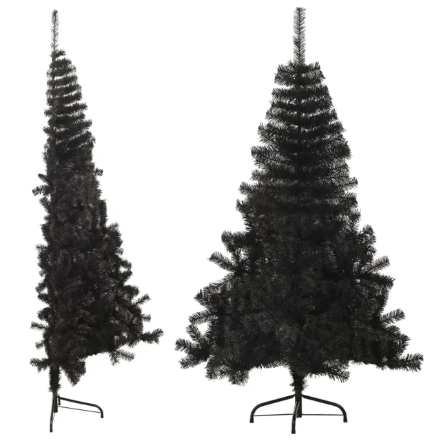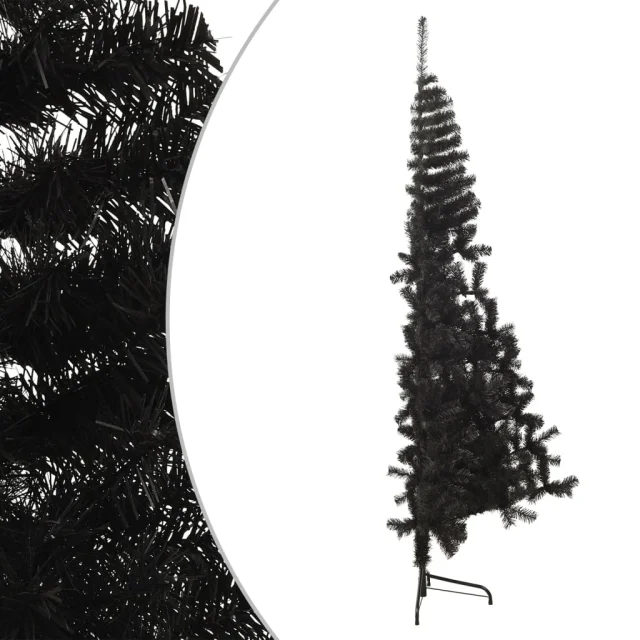Umetna polovična novoletna jelka s stojalom črna 180 cm PVC