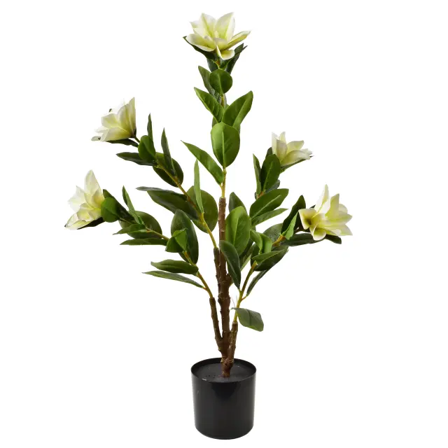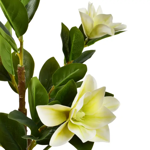 Umetna roža magnolije MONDEX Viridis je elegantna dekoracija za vse, ki želite urejen in svež videz prostora brez zalivanja in posebne nege. Realistična oblika cvetov ter natančno izdelani detajli ustvarijo naraven vtis, zato je primerna za sodobne in klasične interierje. Kombinacija belih cvetov, zelenih listov in črnega lončka deluje umirjeno, a hkrati izrazito.
