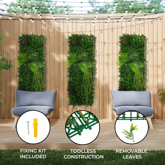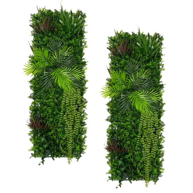 Te ploščice, ki merijo 50 cm x 150 cm, ponujajo široko pokritost, kar vam omogoča, da brez težav ustvarite videz realistične rastlinske stene. Zasnovana je tako za učinek kot za praktičnost, njihova strukturirana, a prilagodljiva oblika pa zagotavlja brezhibno prileganje, ne glede na to, ali polepšate majhno površino ali prekrivate celotno površino z živahnim zelenjem.