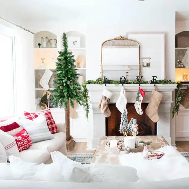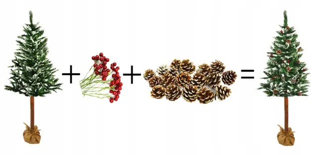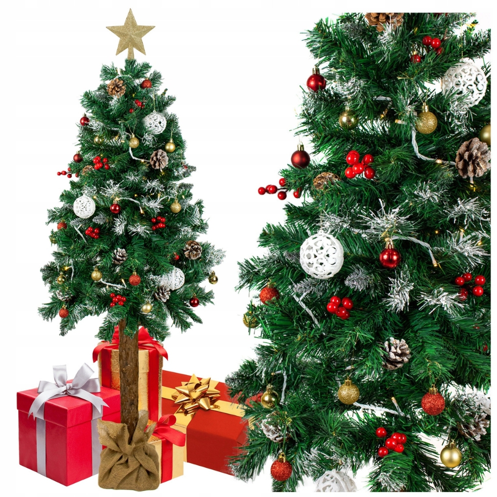 Umetno božično drevo na deblu, visoko kot bor, 220 cm, 3D, stoječi okraski