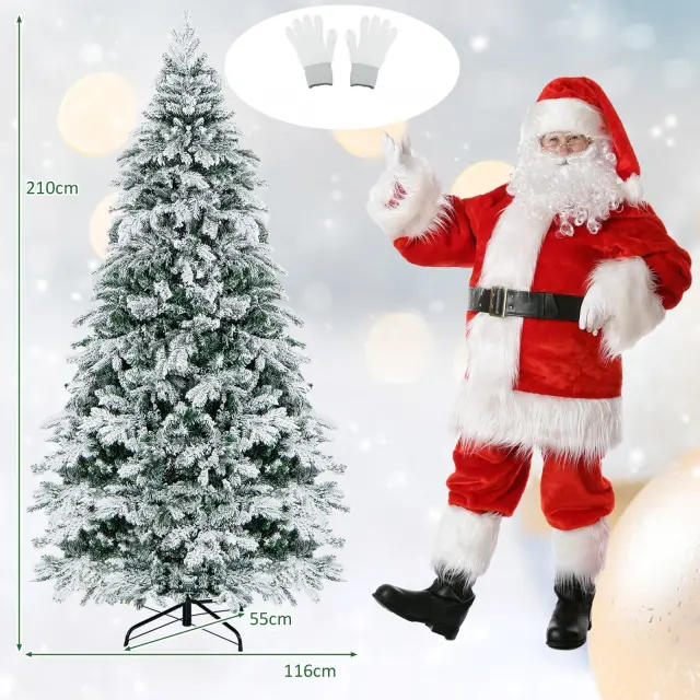 Umetno božično drevo z osvetlitvijo LED in umetnim snegom, 210 cm
