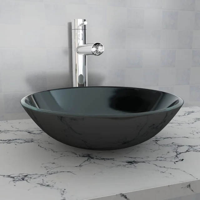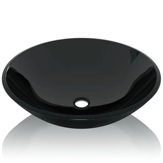 Umivalnik - Kopalna umivalnik - Lavabo iz Kaljenega Stekla 42 cm Črne Barve