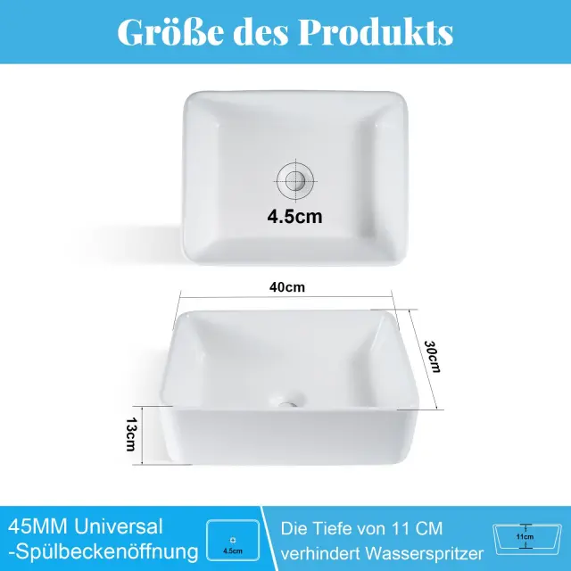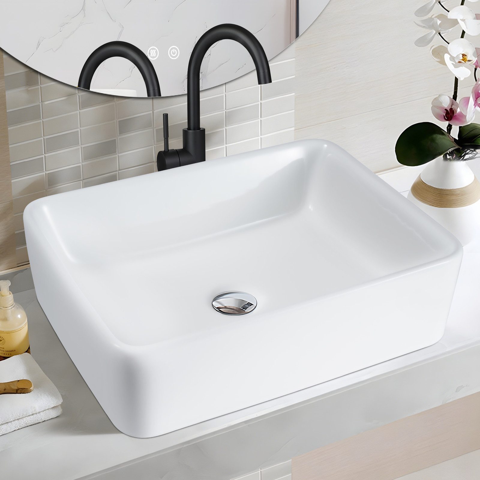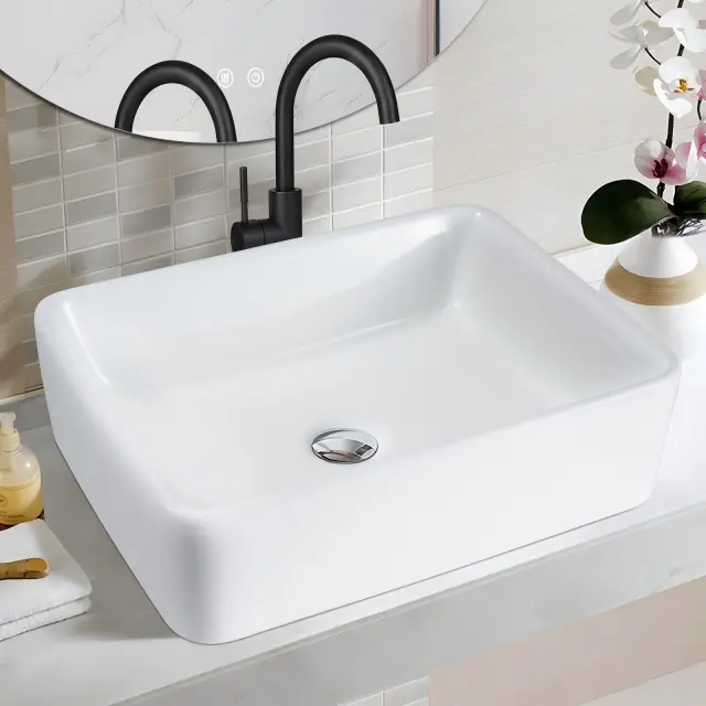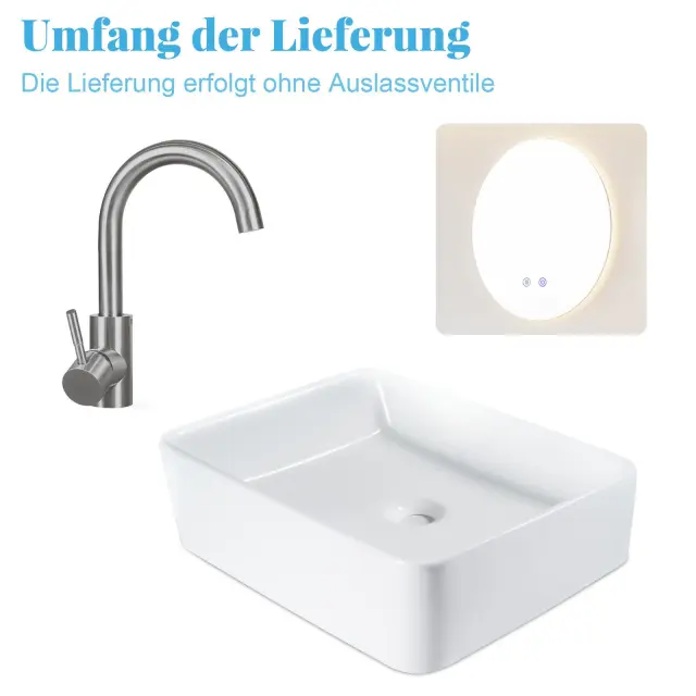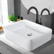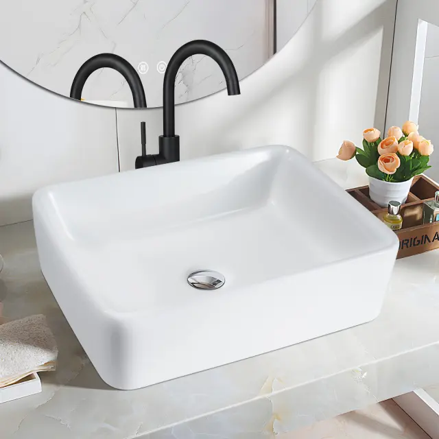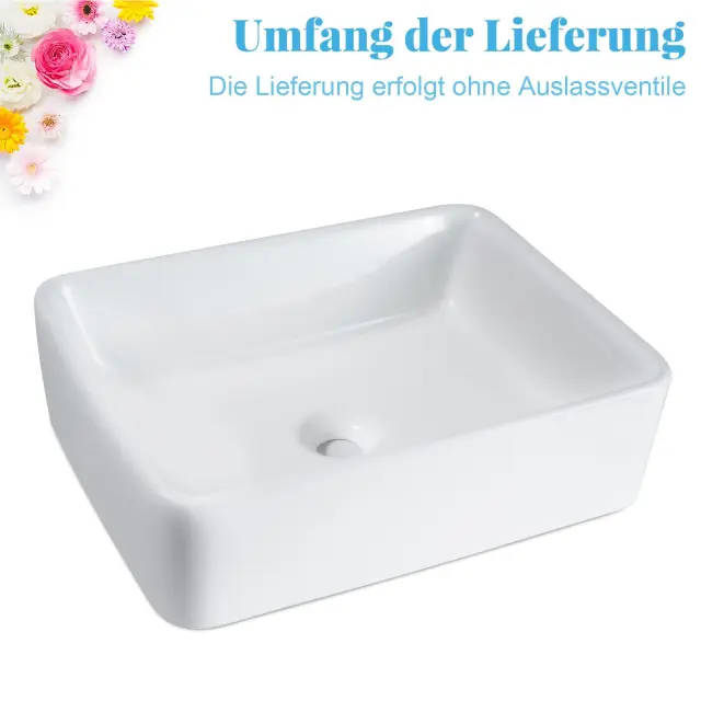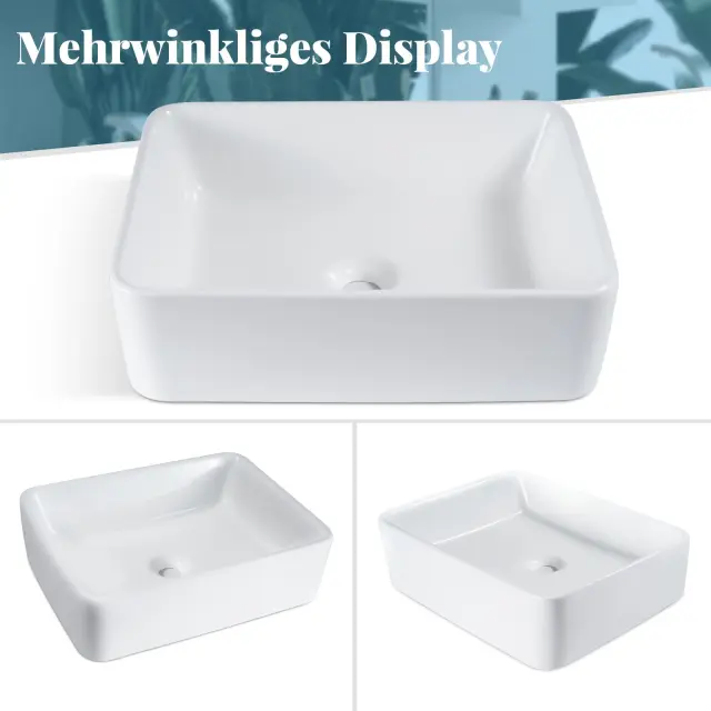 Umivalnik NETTLIFE keramični umivalnik za postavitev - bel kvadratni umivalnik za postavitev