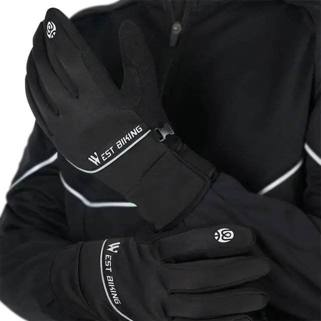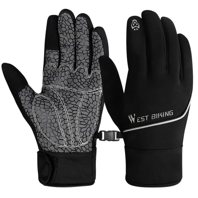 Športne rokavice unisex znamke West Biking, velikost S. Nedrseč vzorec satja na dlani. Omogoča uporabo pametnega telefona v vseh okoliščinah, ne da bi odstranili rokavice. Tipna funkcija na voljo na dveh prstih: palcu in kazalcu (prevodna tkanina).