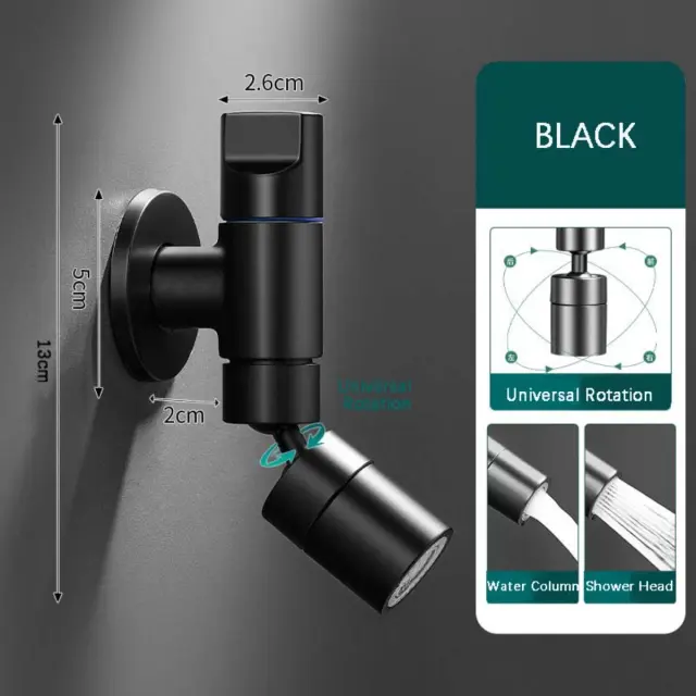 Universalni vrtljiv pipo 360° iz nerjavečega jekla – Hitro odpiranje za vedra in pralni stroj Black