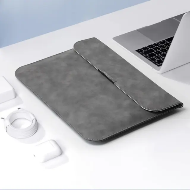 Univerzalna 15/16-palčna torbica za prenosnik s stojalom - sivo PU usnje