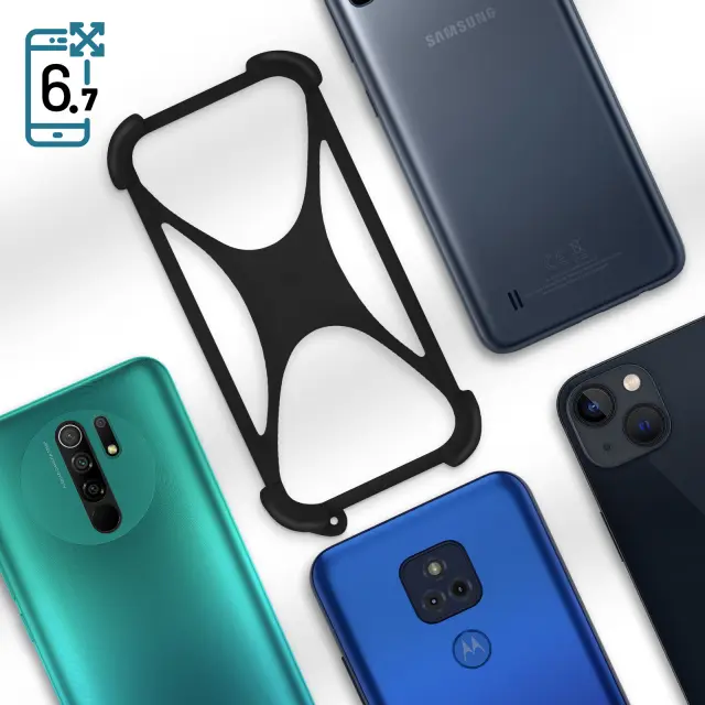Crna univerzalna torbica, združljiva s pametnimi telefoni do 6,7 incev. Izdelan iz mehkega silikona zagotavlja ucinkovito zašcito pred vsakodnevnimi nevarnostmi. Ta tanka prevleka ima ojacane vogale. Integriran nastavek za zapestni trak.