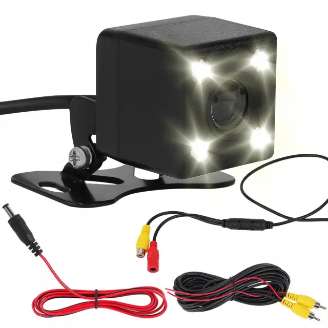 V kompletu je komplet kablov potrebnih za namestitev. Komplet ne vključuje monitorja – z VIDEO kablom lahko povežete poljuben zaslon ali monitor. Nad sliko kamere so pomožne črte, ki bodo močno olajšale parkiranje avtomobila.