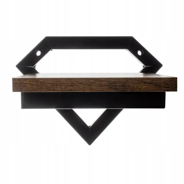 STILNO OBLIKOVANJE Z INDUSTRIJSKIM LOFT POUDAKOM – stenska polica s črnim kovinskim profilom v obliki diamanta je kombinacija sodobnega dizajna z industrijskim loft stilom. Ogrodje je izdelano iz visokokakovostnega jekla, prašno barvano v črni mat barvi , ki ustvarja izrazit kontrast s polico. Geometrična oblika okvirja, ki spominja na diamant, doda notranjosti sodobnost in eleganco, zaradi česar polica ni le funkcionalen, temveč tudi okrasni element vsakega prostora.