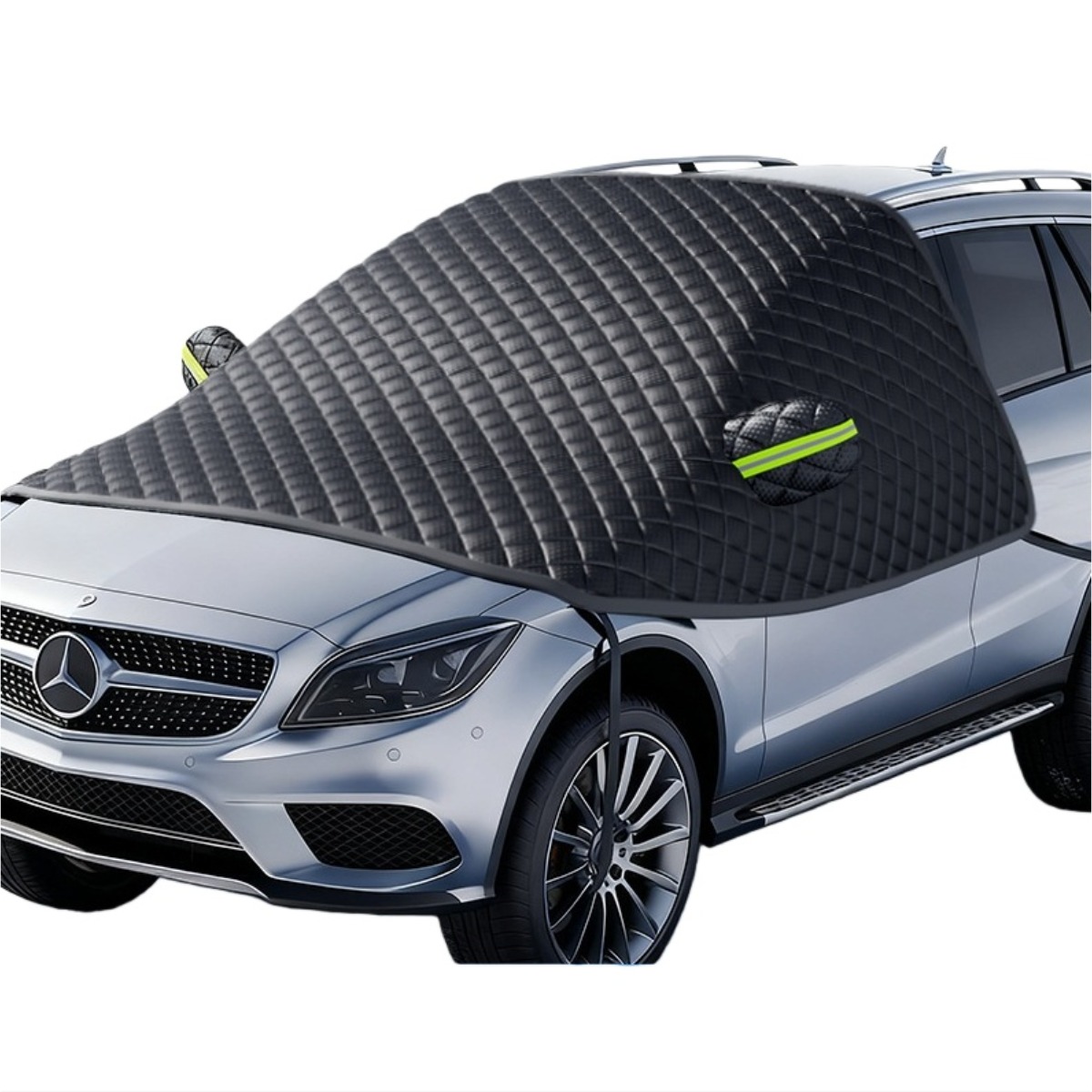 Celovita zaščita pred vremenskimi vplivi: Ta snežna prevleka za avtomobilsko vetrobransko steklo nudi izjemno zaščito pred različnimi vremenskimi vplivi. Učinkovito ščiti vetrobransko steklo vašega vozila pred snegom, ledom, zmrzaljo, dežjem, soncem, prahom in praskami. Njegova robustna zasnova zagotavlja, da vaše vetrobransko steklo ostane čisto in jasno, preprečuje poškodbe in zagotavlja optimalno vidljivost. Odsevna površina zmanjšuje izpostavljenost soncu in tako ohranja vaš avto hladnejši in udobnejši. Ta prevleka deluje tudi kot zaščita vetrobranskega stekla pred zmrzaljo, s čimer odpravlja potrebo po strganju ledu v hladnih jutrih, kar vam prihrani čas in trud.