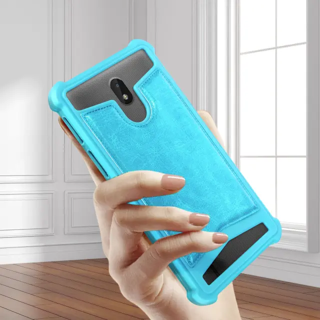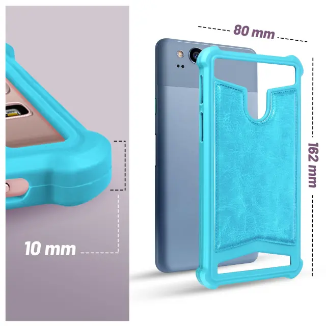 Univerzalni ovitek turkizne barve za pametne telefone od 5,3'' do 5,5''. Izdelan je iz mehkega silikonskega gela z ojacanimi vogali za boljšo zašcito. Omogoca namestitev vseh pametnih telefonov z najvecjo velikostjo 162 x 80 x 10 mm.