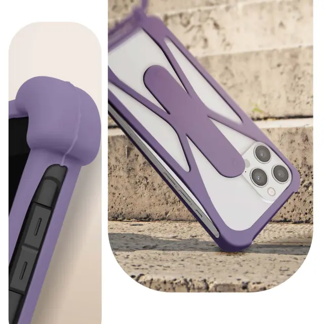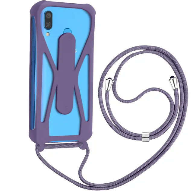 Ovitek za kabel za pametni telefon s konturami odbijaca, ki šciti pred udarci in padci. Ta univerzalna školjka ima nastavljivo stojalo, ki deluje kot podpora za video. 80 cm dolga vrvica omogoca enostaven transport in varen oprijem.