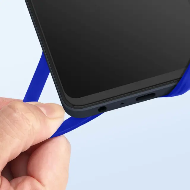 Odkrijte to univerzalno polnocno modro torbico iz serije NeckPouch z vgrajenim kablom za prenašanje pametnega telefona. Opremljen je s silikonsko vrvico, ki omogoca, da mobilni telefon držite okoli vratu. Na zadnji strani je vgrajen shramba za kartice.