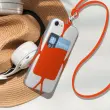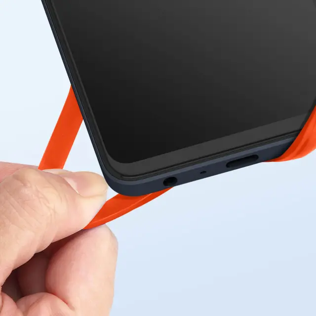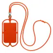 Odkrijte to oranžno univerzalno ohišje serije NeckPouch z integriranim kablom za prenašanje pametnega telefona. Opremljen je s silikonsko vrvico, ki omogoca, da mobilni telefon držite okoli vratu. Na zadnji strani je vgrajen shramba za kartice.