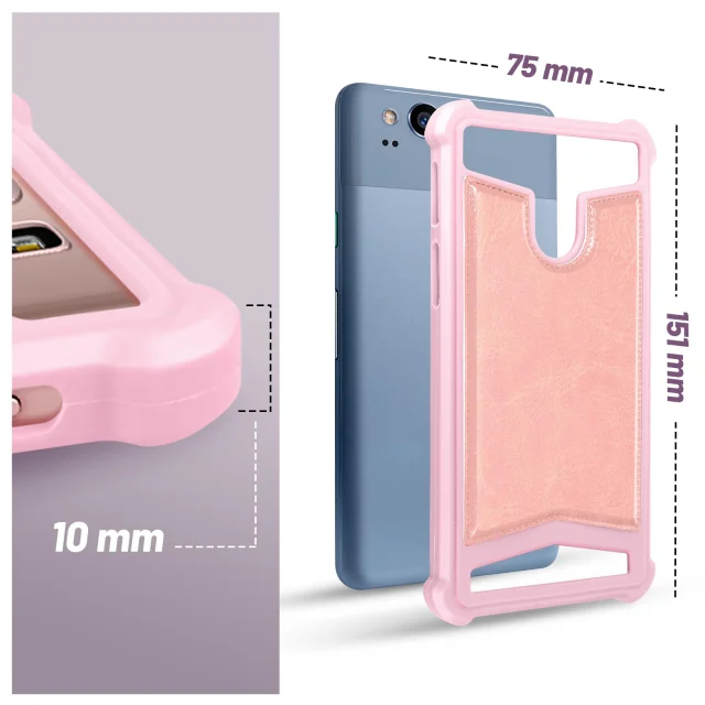 Univerzalna torbica za blaženje udarcev iz umetnega usnja za pametne telefone 5,0\" - 5,3\" – roza