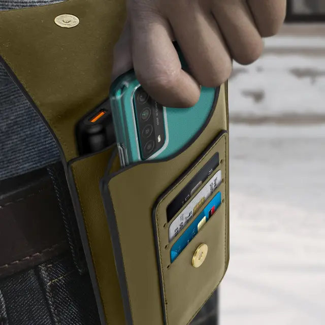 Naj bodo vaše stvari na dosegu roke s to trdno, elegantno in praktično torbico za pas z več žepi. Vključuje 2 velika glavna žepa, ki sta dovolj velika za vaš pametni telefon, tudi z zaščitnim pokrovom/ovitkom. Poleg telefona lahko shranite svoje zapiske, papirje, powerbank, slušalke, dodatke, manjše orodje, TPE.. 4 vogali so ojačani, da bolje absorbirajo udarce v primeru padca.