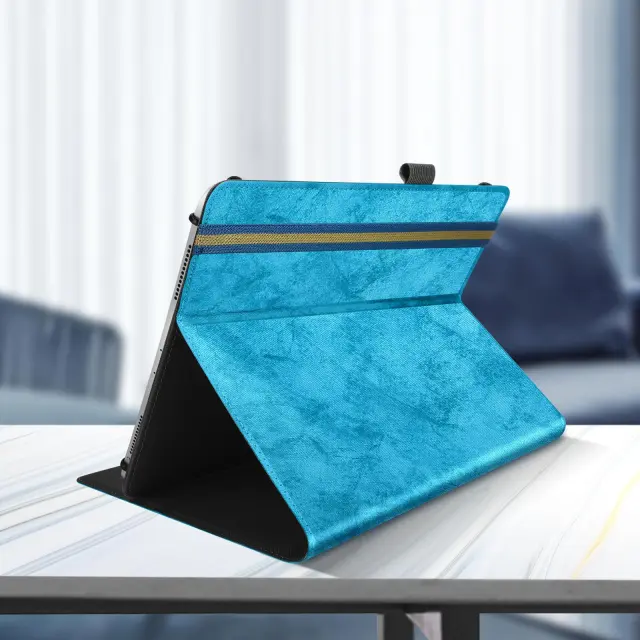 Univerzalna torbica za tablico, mehka na dotik z vzorcem marmorja, stojalo za video in držalo za pisalo - modra