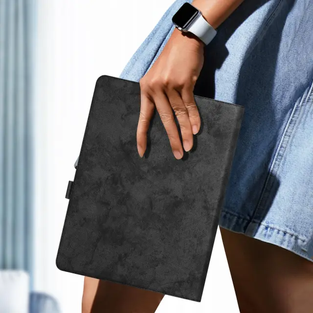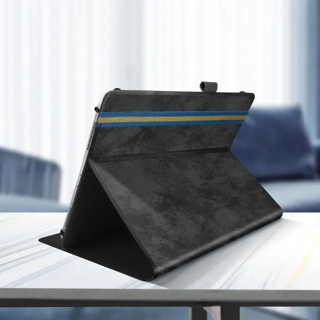 Univerzalna torbica za tablico, mehka na dotik z vzorcem marmorja, stojalo za video in držalo za pisalo - crna