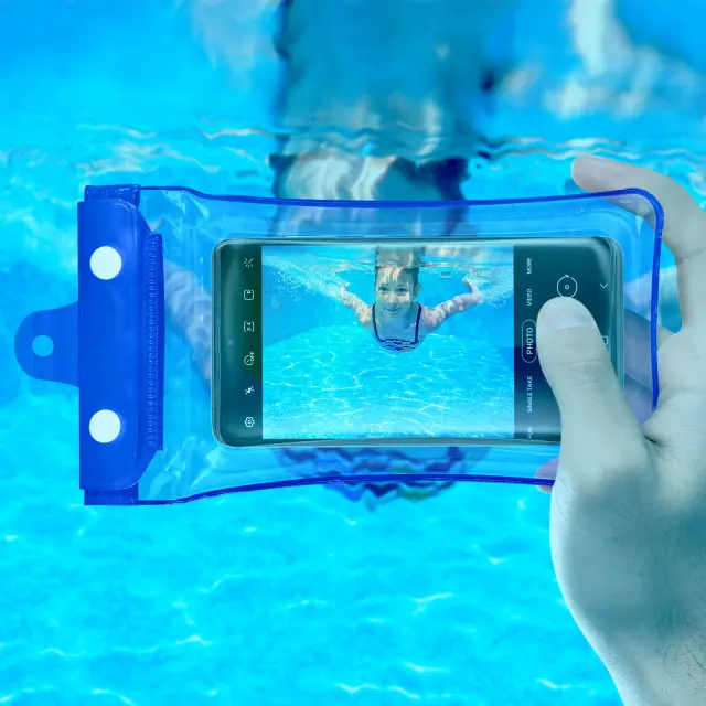 Vzemite svoj pametni telefon s seboj med vsemi aktivnostmi, hkrati pa ga zašcitite s to modro nepremocljivo torbico. Etui vkljucuje odporen in nastavljiv trak za vecjo prakticnost. Ta vodotesen ovitek je univerzalno združljiv.