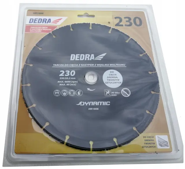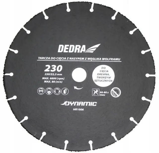 Velikost, prikazana na fotografiji, je primer. Zasnovana za rezanje lesa, ivernih plošč in plastike. Zahvaljujoč podlagi iz volframovega karbida disk zagotavlja varnost pri delu ter dolgo življenjsko dobo in visoke hitrosti rezanja.