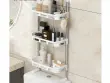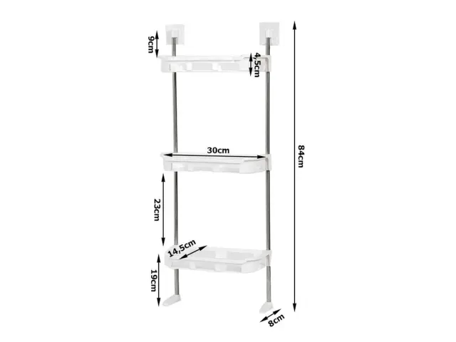 Zahvaljujoč svoji prostorni zasnovi, ta polica vam omogoča, da organizirate in shranite različne kopalniške potrebščine, kot so milo, šamponi, geli za prhanje, brisače in še več. S svojimi večplastnimi policami in obešalniki lahko enostavno razporedite in dosežete, da so vaše potrebščine vedno pri roki.
