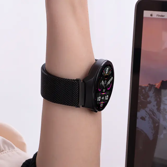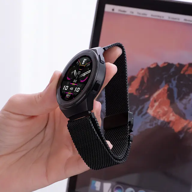 Eleganten in Stilski: Izboljšajte svojo pametno uro s tem prefinjenim črnim paškom iz nerjavečega jekla. Gladka, polirana površina doda pridih elegance vsaki obleki, zaradi česar je popoln za priložnostne in formalne priložnosti. Njegova brezčasna oblika zagotavlja, da bo ostal stilski dodatek še leta. Črna barva dopolnjuje široko paleto številčnic in osebnih stilov, kar ponuja vsestranskost in eleganco.