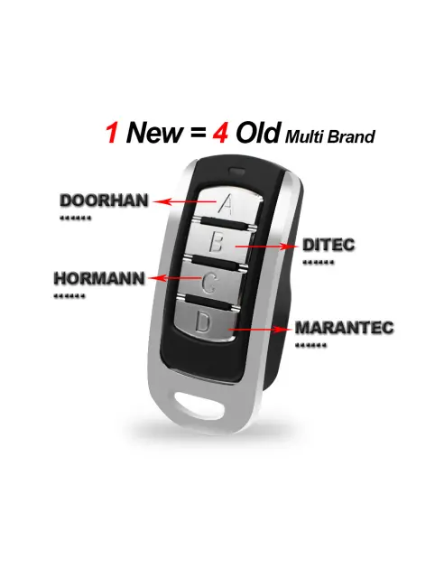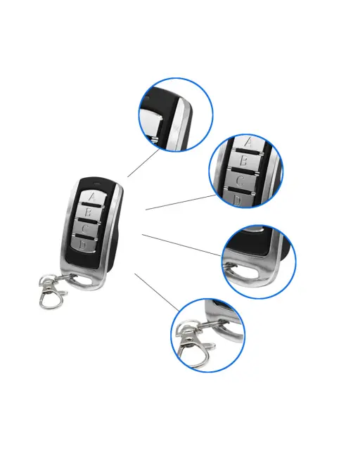 Zberite 4 daljinske upravljalnike v enem: razmnoževalnik ima 4 gumbe, tako da lahko zberete 4 različne upravljalnike v enem. Ta 4-kanalni RF brezžični daljinski upravljalnik se lahko uporablja za garažna vrata, vrata, alarmne sisteme itd.