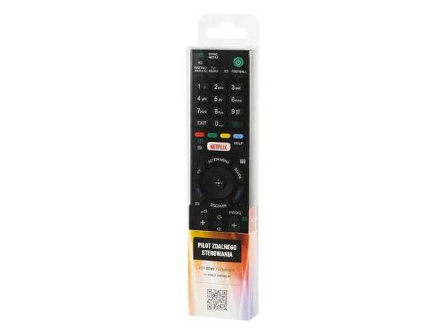 Namembnost: naprave SONY: TV, VCR, DVR Domet delovanja: 8 m Napajanje: 2 x AA baterije (baterije niso priložene) Univerzalni daljinski upravljalnik, ki omogoča upravljanje naslednjih SONY naprav: TV, VCR, DVR. Izdelek ima potrebne gumbe za osnovno delovanje teh naprav. Enostavna oblika in postavitev zagotavljata popolnoma enostavno in intuitivno upravljanje. Za izdelavo pilota so bili uporabljeni visokokakovostni materiali, ki zagotavljajo dolgo obstojnost izdelka. Idealen za nadzor vaše naprave, ko se tovarniški daljinski upravljalnik izgubi ali poškoduje. Univerzalno – ustreza večini modelov SONY TV, VCR in DVR Visoka funkcionalnost – tako kot pri originalnih daljincih Odlična kakovost – pri izdelavi so bili uporabljeni najkakovostnejši materiali Preprosto in intuitivno upravljanje Veliko število gumbov za upravljanje številnih funkcij televizorja Gumbi, odporni proti obrabi Udoben za držanje