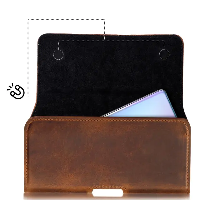 Univerzalni etui za pas velikosti M Royal usnje z magnetnim zapiranjem, Rjava