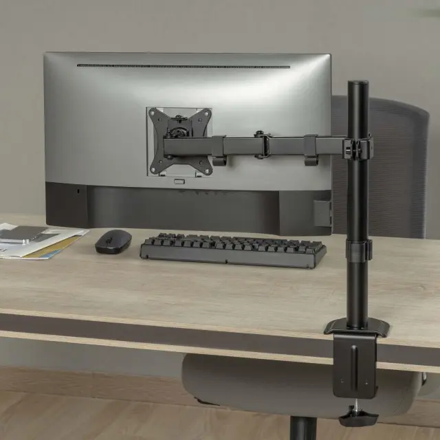 Gibljiv nosilec za LCD monitor do 32 palcev je popolna rešitev za tiste, ki želijo izboljšati svoje delovno okolje in povečati udobje med uporabo računalnika. Ta nosilec je zasnovan za LCD monitorje do velikosti 32 palcev in omogoča popolno prilagodljivost glede na vaše potrebe. Z možnostjo prilagajanja višine, nagiba in obračanja monitorja vam omogoča optimalno postavitev za zmanjšanje napetosti v vratu in hrbtu. Nosilec je izdelan iz visokokakovostnih materialov, ki zagotavljajo trdnost in stabilnost, hkrati pa ohranjajo estetski videz vašega delovnega prostora. Ne glede na to, ali ste doma ali v pisarni, bo ta nosilec zagotovil, da bo vaš monitor vedno v pravilnem položaju, kar bo povečalo vašo produktivnost in udobje med delom.
