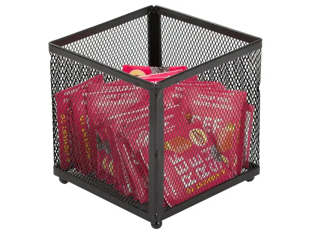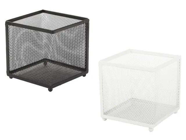 Vzdržljiv in Stilski Dizajn: Izdelan iz kakovostne kovine, je ta mrežasti organizator robusten in dolgotrajen. Njegov minimalističen dizajn in mrežasta struktura omogočata dobro vidljivost in dostopnost vseh shranjenih predmetov, hkrati pa preprečujeta nabiranje prahu. Eleganten črn zaključek se brez težav ujema z različnimi stili in dekorjem, od modernih do klasičnih pisarn.