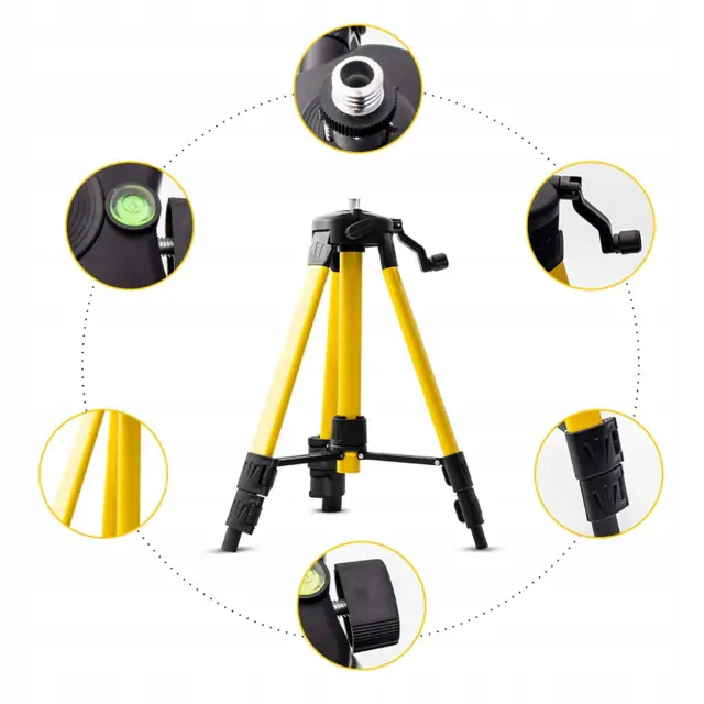 Izboljšajte natančnost in stabilnost svojega dela s univerzalnim kovinskim stativom za laserske nivelirje, ki se prilagodi na višino do 120 cm. Stativ je izdelan iz trpežnega kovinskega materiala, ki zagotavlja dolgo življenjsko dobo in stabilnost v vseh pogojih. Primeren je za širok spekter laserskih nivelirjev in merilnih naprav, saj ima standardno 1/4-palčno navojno odprtino, ki omogoča enostavno in hitro namestitev ter združljivost s številnimi napravami.