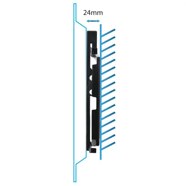 Kovinski, robusten stenski nosilec za televizorje velikosti od 14″ do 50″. Enostaven za namestitev. Združljiv s standardom VESA 75x75mm – 200x200mm. Priložena je majhna vodna tehtnica za enostavno izravnavo nosilca. Nosilec ima nastavljiv naklon.