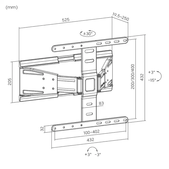 - Razdalja od stene: 19,5 ~ 250 mm