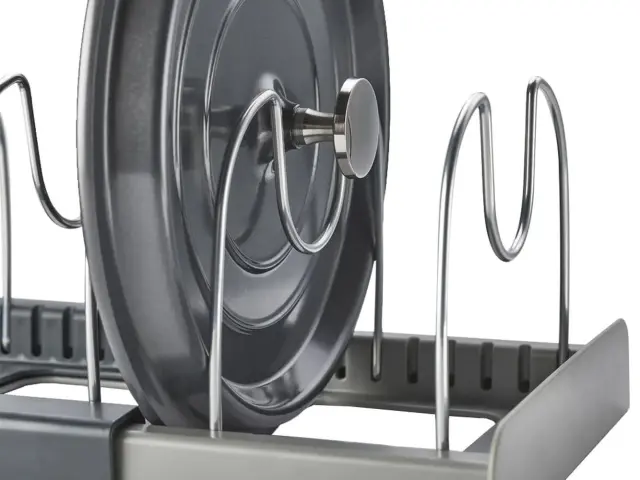 Namesto da lonce in ponve v predalu postavljamo enega na drugega in s tem tvegamo, da opraskamo njihovo površino, jih lahko organizirano razporedimo na stojalo.