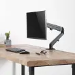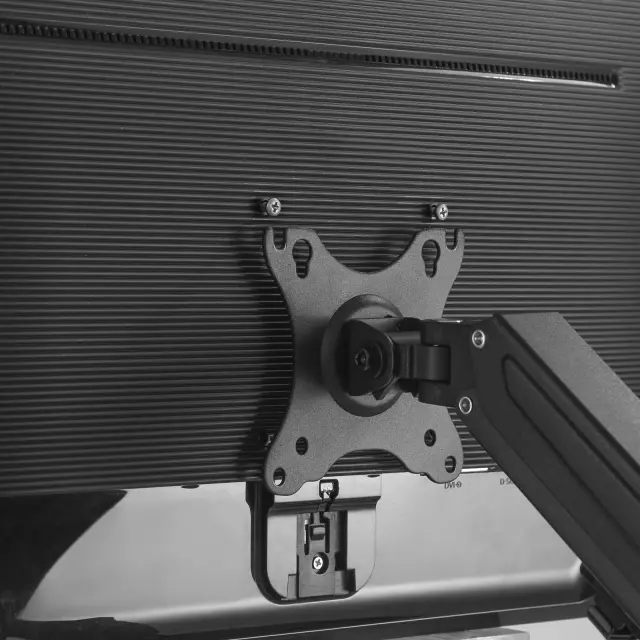 Nosilec monitorja je opremljen s plinsko tlačno vzmetjo, tako da ga lahko premikate gladko in tiho. Medtem ko je treba običajne nosilce na nosilni roki prilagoditi, pri tem modelu zadošča rahel poteg ali pritisk na rob zaslona. Tako je individualna nastavitev višine, naklona in vrtenja še udobnejša. Za zagotovitev, da monitor varno sedi na držalu, ima standard VESA 100 x 100 mm in 75 x 75 mm.