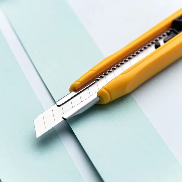Ergonomska oblika zagotavlja trden oprijem in udobje uporabe, čvrsti plastični gumb pa omogoča spreminjanje dolžine rezila .