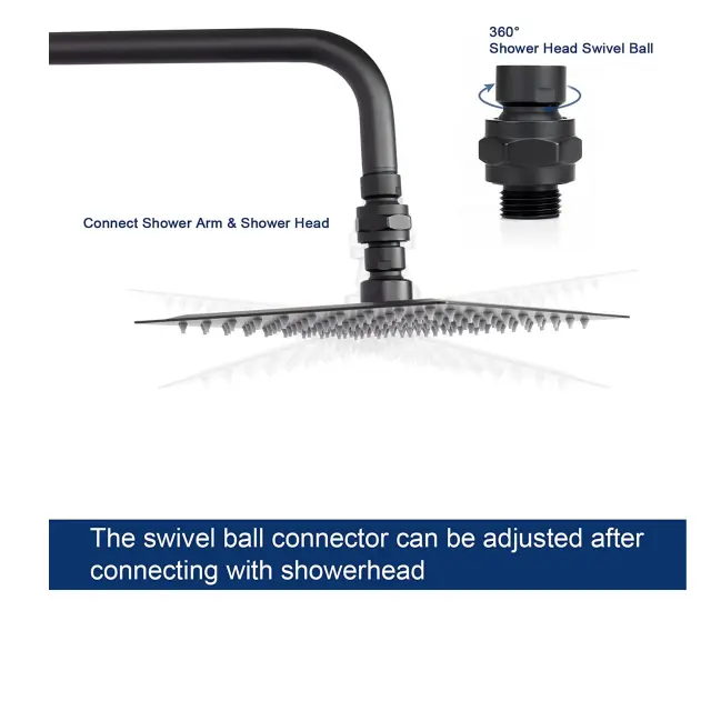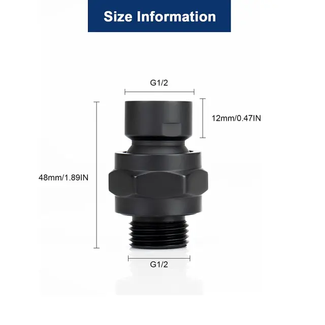 Vrtenje za 360°: Ta obračalni spoj za tuš glavo omogoča popolno vrtenje za 360 stopinj, kar vam zagotavlja vrhunsko prilagodljivost in udobje pri usmerjanju tuš glave v želeni kot.