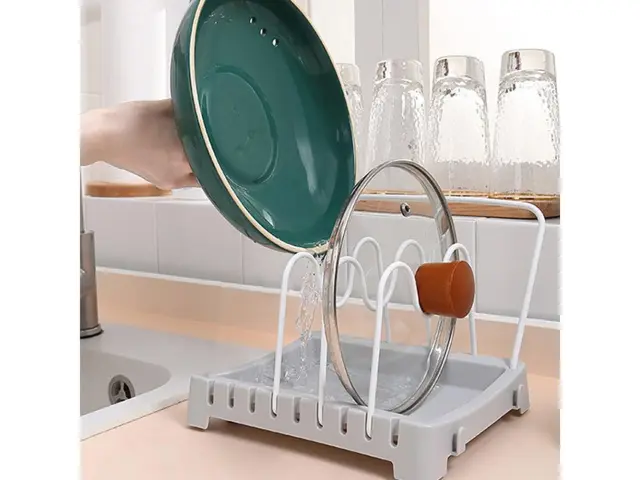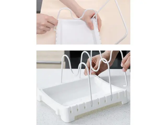 Sušilni stroj je opremljen s 3 premičnimi, nastavljivimi rokami , ki jih lahko poljubno konfigurirate. Izdelate lahko večje ali manjše pregrade . Ob sušilnem stroju je nameščena prečka, ki preprečuje zdrs posode z rešetke . Naglavni trak lahko uporabite tudi kot obešalnik za manjše kuhinjske krpe.