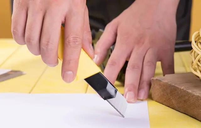 Ergonomska oblika zagotavlja trden oprijem in udobje uporabe, čvrst plastični gumb pa omogoča spreminjanje dolžine rezila.