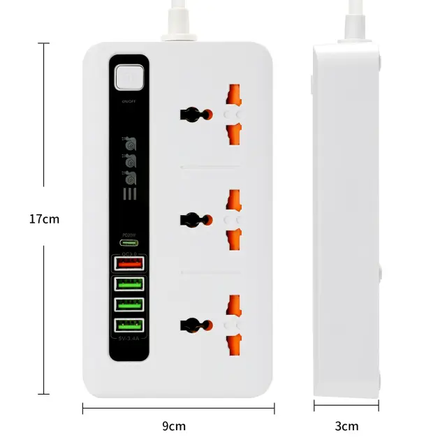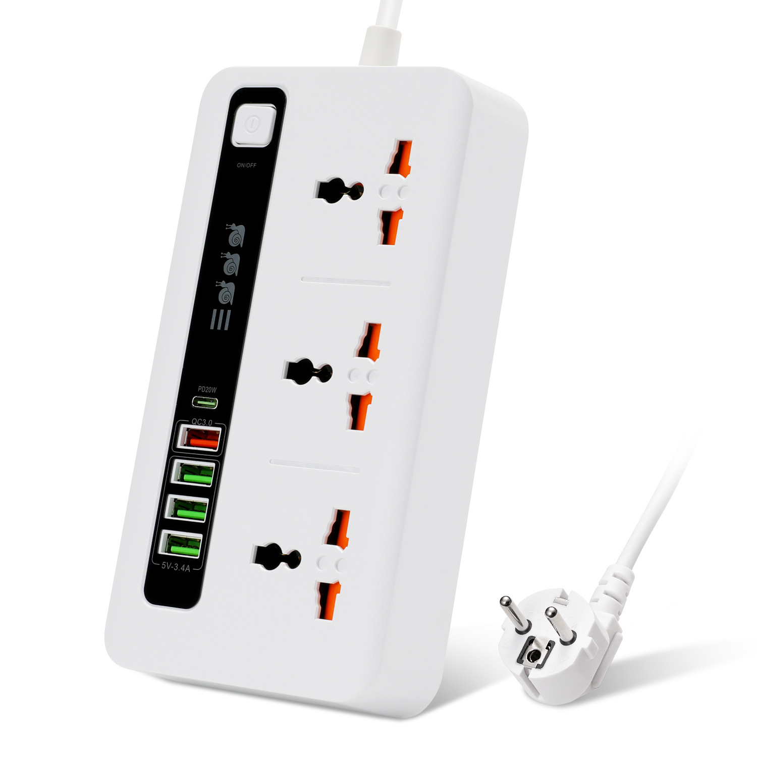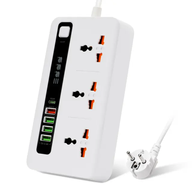 Vsestranski in priročen: s 3 univerzalnimi vtičnicami in 4 vrati USB (vključno z 1 tipom C) se ta razdelilnik prilagodi širokemu naboru naprav in odpravlja potrebo po več adapterjih.