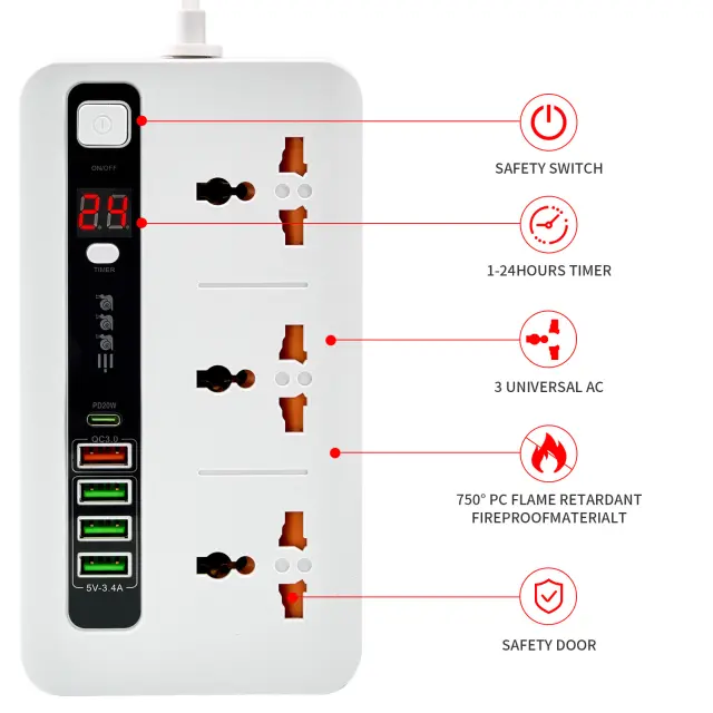 Hiter in učinkovit: ta napajalni razdelilnik, opremljen s tehnologijo PD 20 W in QC 3.0, zagotavlja visoke hitrosti polnjenja za vaše združljive naprave in vam prihrani dragoceni čas.