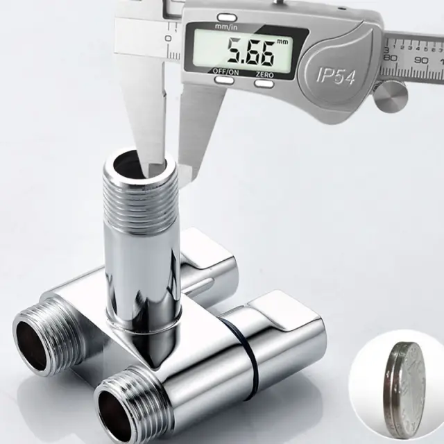 Vsestranska zasnova z enim dovodom: Ta razdelilnik z enim dovodom in dvema odvodoma je popoln za ustvarjanje razvejane oskrbe z vodo, kar vam omogoča preprosto povezavo dveh naprav ali aparatov na en vir vode.