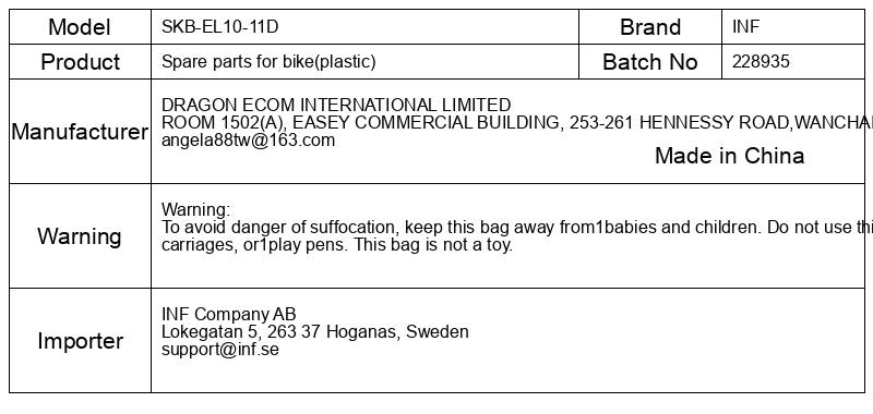 Opozorilo: Da bi se izognili nevarnosti zadušitve, vrečko hranite izven dosega dojenčkov in otrok. Vrečke ne uporabljajte v otroških posteljicah, vozičkih ali igralih. Ta vreča ni igrača.