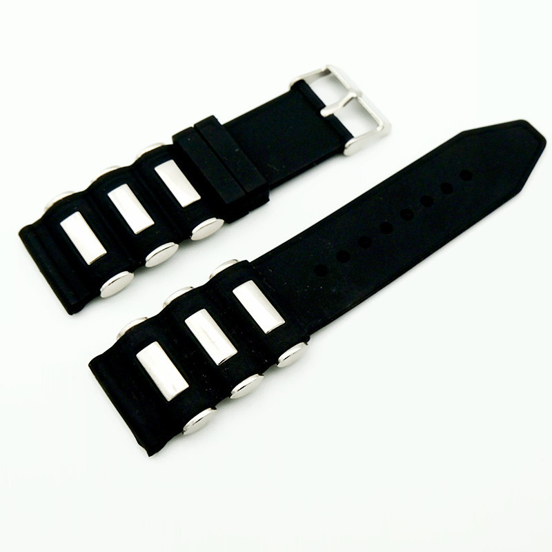 Elegantni kovinski poudarki: Eleganten črn silikon dopolnjujejo elegantni kovinski poudarki, ki vaši uri dodajo pridih prefinjenosti. Kovinski poudarki so skrbno integrirani v dizajn in izboljšajo njegov celoten estetski videz.