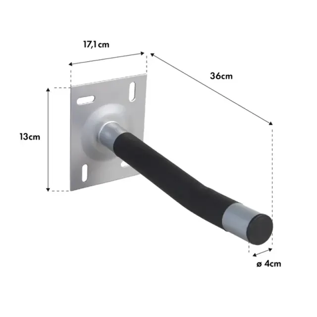 Maclean MC-438 je komplet 2 stenskih nosilcev, zasnovanih za priročno shranjevanje različnih predmetov, kot so pnevmatike, kolesa, lestve, kolesa, vrtne cevi in drugo. Držala so izjemno vsestranska in vam lahko pomagajo ohranjati urejenost vaše garaže, delavnice ali vrta. Robustna konstrukcija iz visokokakovostnega jekla omogoča varno shranjevanje predmetov do teže 70 kg.