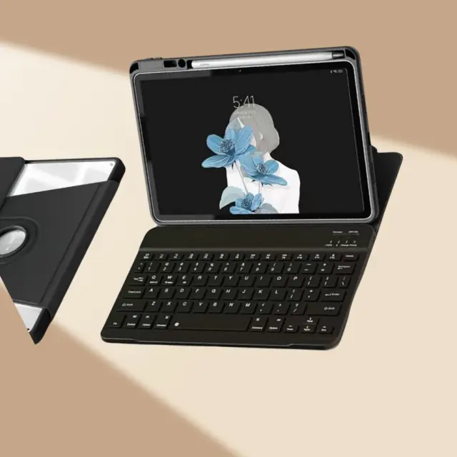 Vsestranska 360° rotacija: Uživajte v prilagodljivosti s 360-stopinjskim vrtljivim ohišjem, ki omogoča preklapljanje med ležečim in pokončnim načinom. Ta funkcija je idealna za različne dejavnosti, kot so gledanje videoposnetkov, brskanje po spletu ali tipkanje dokumentov. Ne glede na to, ali ste v pisarni, doma ali na poti, lahko preprosto prilagodite svoj iPad za optimalno udobje gledanja in tipkanja.