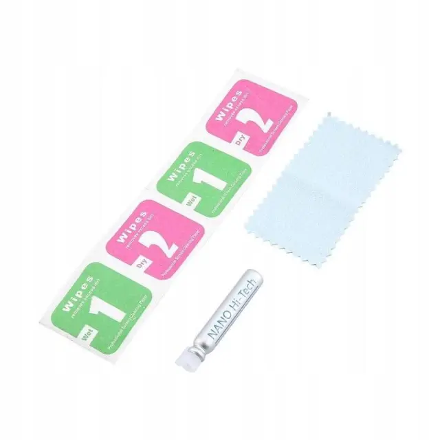 Zaslon pametnega telefona obrišite s krpo z oznako št. 1 – vsebuje snov, ki omogoča temeljito čiščenje zaslona pred nanosom tekočega stekla. Obrišite zaslon do suhega s krpo # 2.
